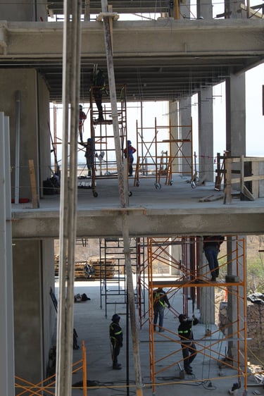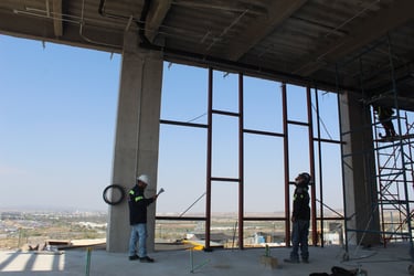 Montaje de tableros eléctricos: Se realiza la instalación de gabinetes y cajas de distribución metálicas en las paredes, los cuales se habilitan como puntos de control, alojamiento de interruptores y centros de carga para la infraestructura.