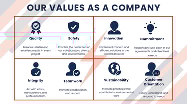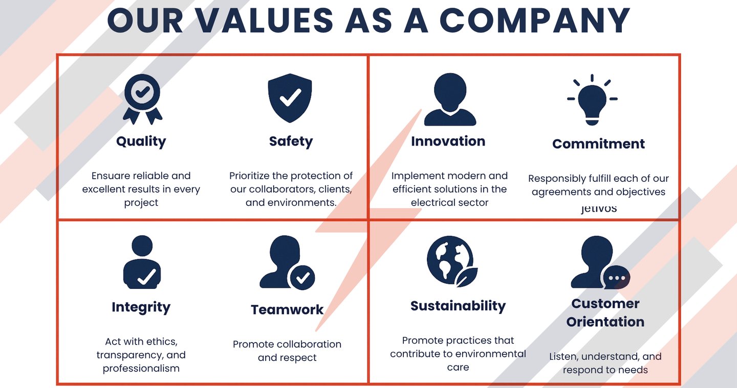 To be a leading company in the electrical sector nationwide, recognized for its technical excellence, commitment to sustainability, and ability to lead high-impact projects with efficiency, professionalism, and social responsibility.